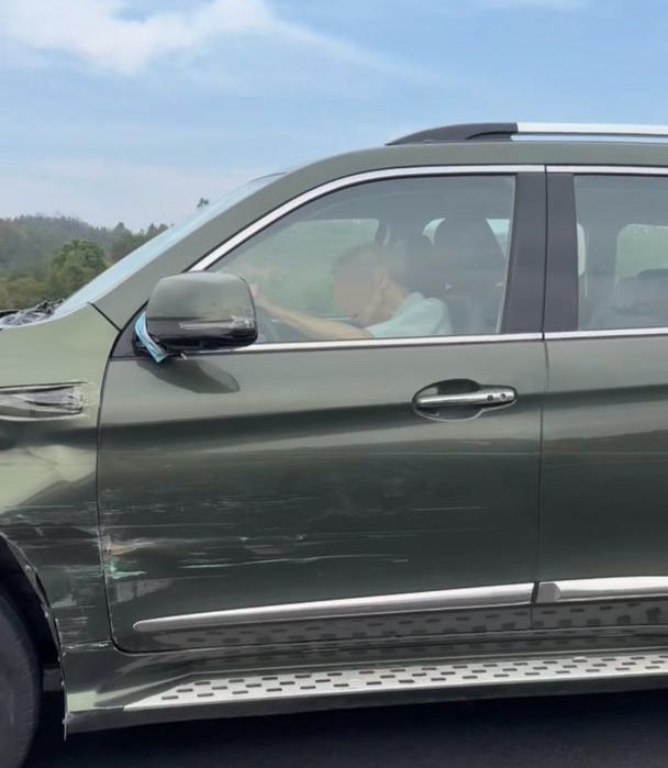 据报道,当天同样碰到该车辆的一名网友告诉记者,该车还与其他车辆发生碰撞,出现交通事故。现场照片和视频显示,这辆SUV汽车撞上一辆白色的汽车,停靠在路边。